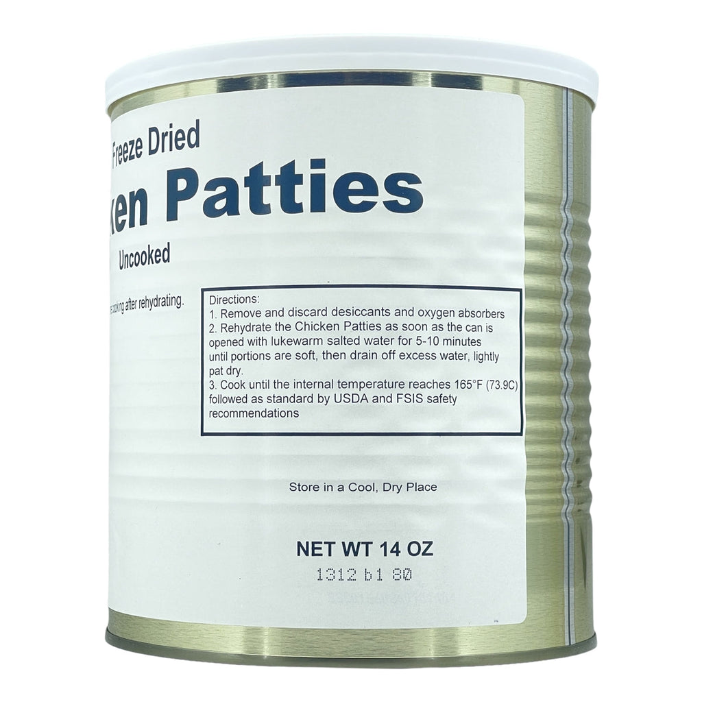 The freeze dried uncooked Chicken Patties are a whopping 3/8-inch thick. All cans were sealed in an oxygen and moisture free environment.